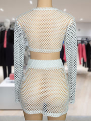 O-Ring Cutout Drawstring Front Crochet Cover Up Without Panty