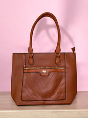 Designed to turn heads and carry it all, this Blush Chevron Tote blends modern style with practical elegance. Made from soft faux leather in a romantic muted pink, it features textured chevron stitching, a zippered front pocket, gold-tone accents, and double handles for all-day comfort. Spacious enough for your essentials (and then some), it’s the ideal tote for work, shopping, or everyday wear.
