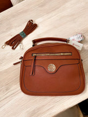 The Grenobil handbag exudes sophistication with its sleek exterior and luxurious gold detailing. Designed for both function and style, this bag features a structured top handle and a long, adjustable strap for versatility. Whether you’re heading to work or an evening out, this bag is your perfect companion to keep your essentials organized with elegance. The timeless gold combination ensures it complements any outfit with ease.