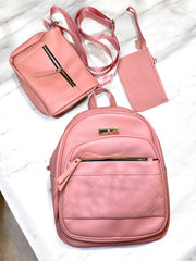 Chic, soft, and versatile — the Deborah Luxe Blush Trio Set is perfect for everyday style. This matching 3-piece set includes a quilted zip backpack, a compact crossbody bag, and a sleek wristlet clutch. Whether you’re heading to school, work, or a weekend outing, carry everything you need with coordinated charm.