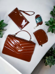 Elegant Glossy 3 Piece Handbag with Chevron Detail D9318