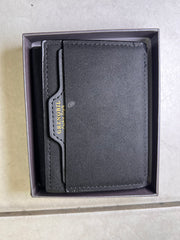 Discover the elegance of simplicity with the Grenobil Sleek Black Leather Wallet. Crafted from premium leather, this wallet combines durability with a refined, minimalist design, perfect for those who appreciate understated style. The deep black tone, highlighted by the subtle Grenobil logo on the front pocket, gives it a timeless appeal that complements any attire. Compact yet spacious, it provides ample room for your essential cards and cash without bulk. Elevate your daily essentials with a wallet that speaks of sophistication and practicality.