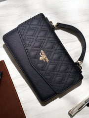 Indulge in timeless elegance with this Grenobli diamond-quilted handbag. Featuring a structured top handle and sophisticated gold accents, this bag is the epitome of refined style. Its textured finish and precise stitching create a luxurious feel, perfect for complementing both formal and casual outfits. Compact yet spacious enough for essentials, this handbag combines functionality with class, making it an ideal companion for any occasion.