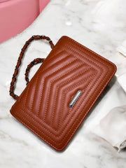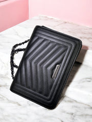 Complete your look with this chic chevron quilted set, featuring a stylish purse, wallet, and card holder in a sleek, coordinated design. The purse boasts a unique chain-link strap for added elegance, blending fashion with functionality. Each piece is thoughtfully crafted to keep your essentials organized, making this set ideal for both casual outings and formal occasions. Embrace timeless sophistication and elevate your accessory collection with this versatile and polished trio.