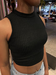 Volaré Fashion Mock Neck Rib Knit Tank Top