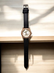 Add a splash of elegance to your wrist with our Rose Radiance Watch, designed for women who love timeless glam. This chic timepiece features a crystal-embellished bezel that catches the light beautifully, paired with a soft pink dial and textured strap. Whether worn casually or as a stylish accent, this watch effortlessly blends sparkle with sophistication.
