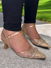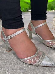 Step into refined luxury with the Sarah Shoes Luxe Pointed Toe Heels. These heels feature a sleek pointed toe design adorned with shimmering crystal details on the strap, exuding sophistication with every step. Perfect for formal occasions, weddings, or elegant evening wear, they offer a comfortable ankle strap for secure fit and all-night confidence. Available in stunning Gold and Silver hues, these heels effortlessly elevate your style.
