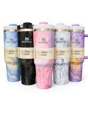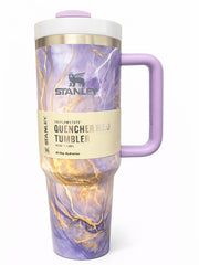 The Stanley Quencher H2.0 40oz Marble-Flow Tumbler with Handle combines a bold marble look with serious everyday practicality.
